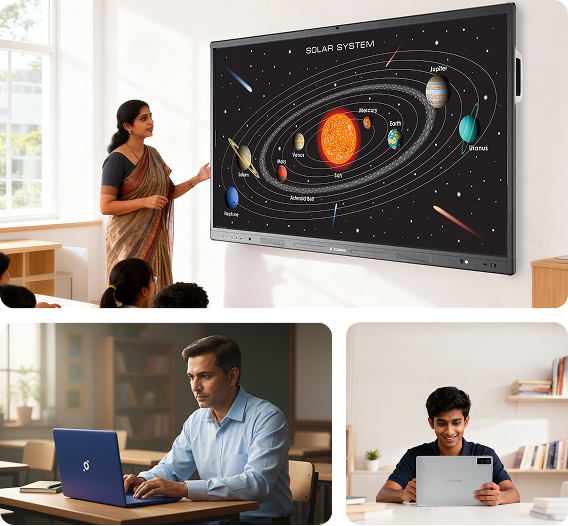 COSMIQ Draw, Learn, and Guard enable interactive teaching, bilingual curriculum delivery, and secure centralized device management. Our India developed software platforms and AI engines are adaptable and scalable.
