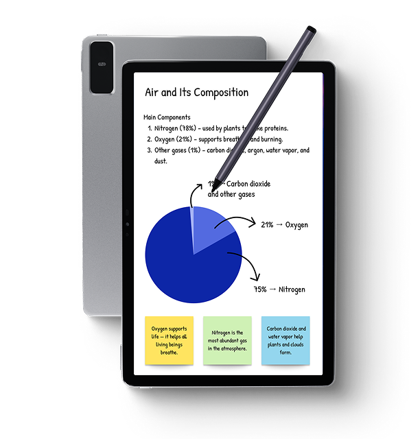 Precise pen input for writing and notes.